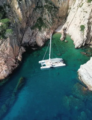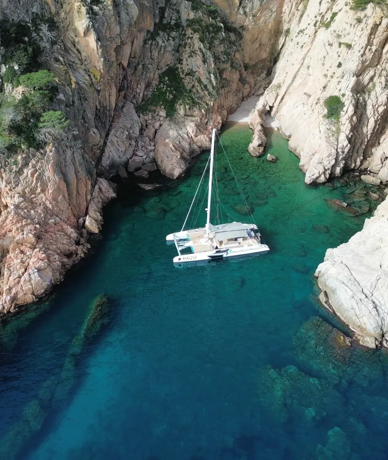 Profitez d'une expérience de navigation inoubliable à bord du catamaran MAGIC. En glissant doucement sur les eaux bleues de la Costa Brava, vous profiterez de la navigation silencieuse. Nous partons du port de Palamós, et longeons la magnifique côte en passant par les Îles Formigues, et nous continuons en appréciant les criques bordées de pins et de falaises pointues jusqu'au Cap de Begur. Nous passons devant les vilages de Calella de Palafrugell, Llafranch et Tamariu et nous apprécions la spectaculaire côte rocheuse du Cap de Begur.
