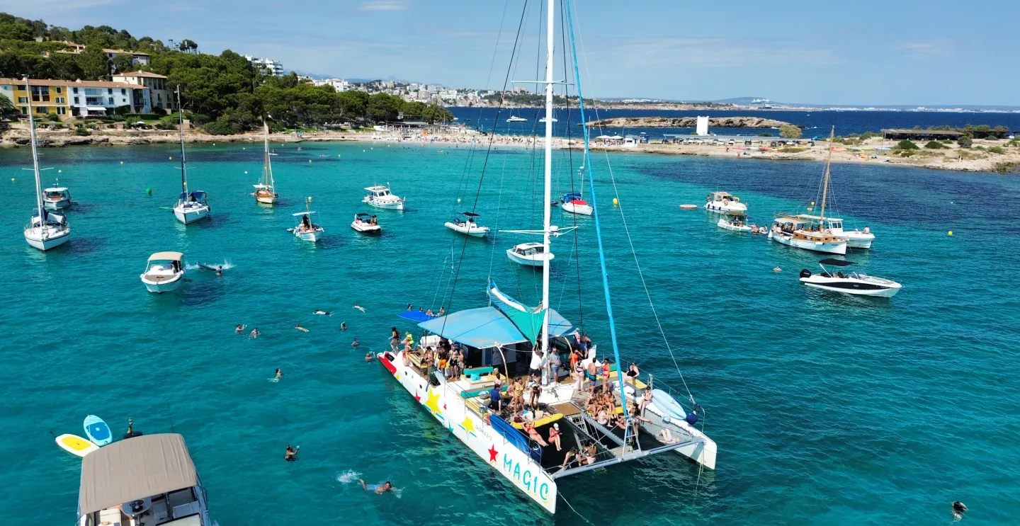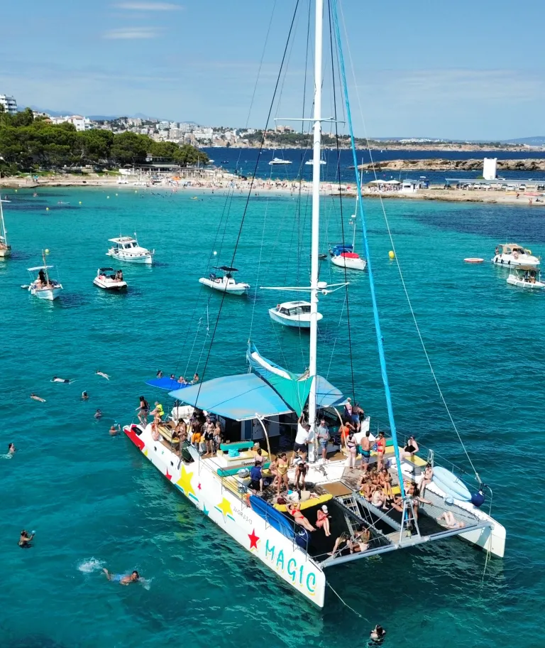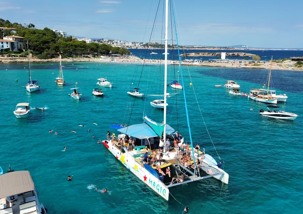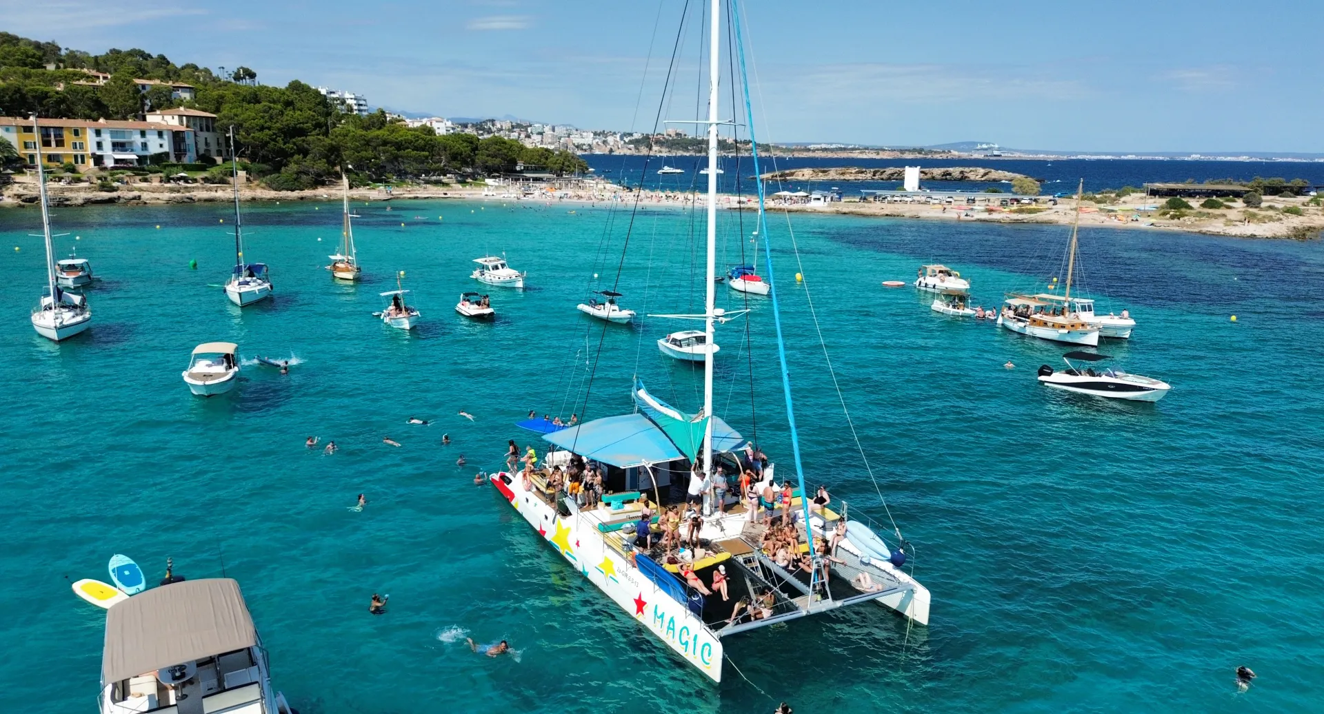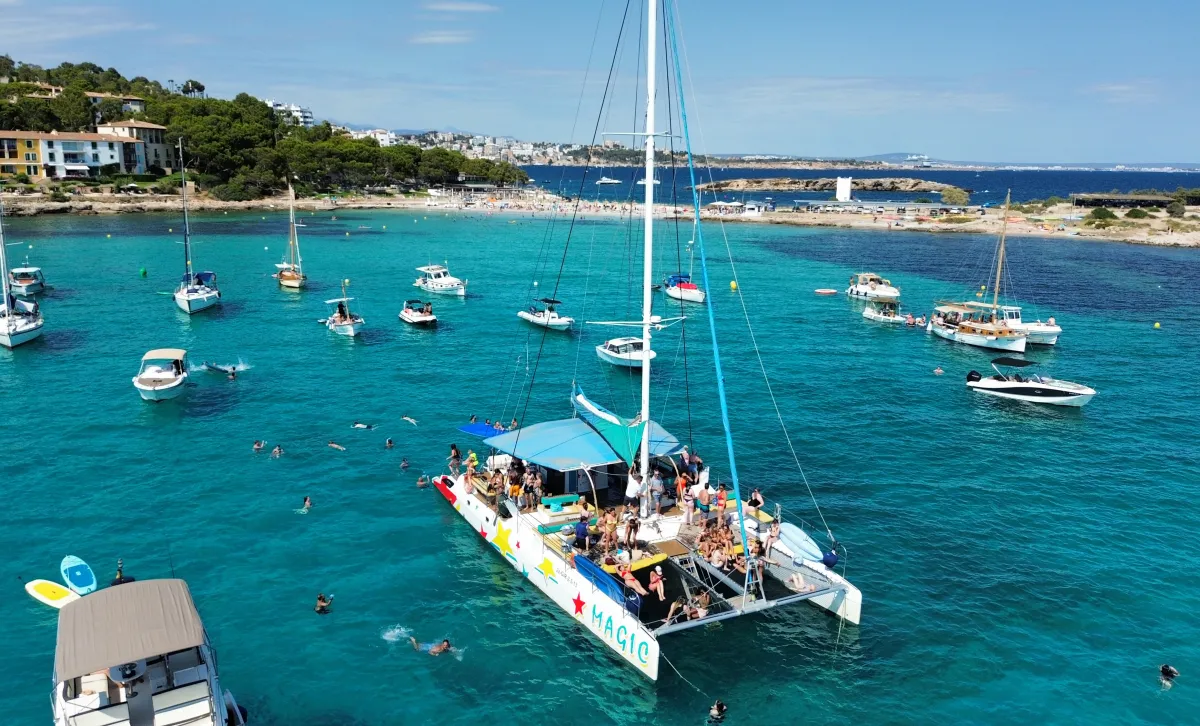 Admire the southwest coast of the Bay of Palma until you reach the beautiful cove of Illetes, fall in love with its crystal clear waters while taking a refreshing bath and, as a final touch, enjoy the beautiful views of the Cathedral of Palma seen from the sea!
