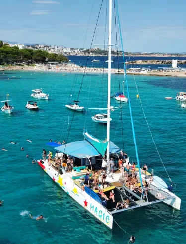 Refreshing departure of 3 and a half hours from the pier located in the center of the Paseo Marítimo in front of the Auditórium de Palma. Quiet and comfortable sailing or motor navigation observing the spectacular yachts and cruises moored in the Port of Palma and the fascinating southwest coast of the Bay of Palma until we reach the beautiful cove of Illetes. We stop in its turquoise waters where you can enjoy a peaceful bath, enjoy the large floating mat and snorkel , sunbathe on the large solarium and enjoy the exclusive environment offered by this privileged place of the Bay of Palma. We sail silently back over the blue waters of the Bay of Palma, you will see the impressive Cathedral of Palma from the sea, and finally reach the starting point.