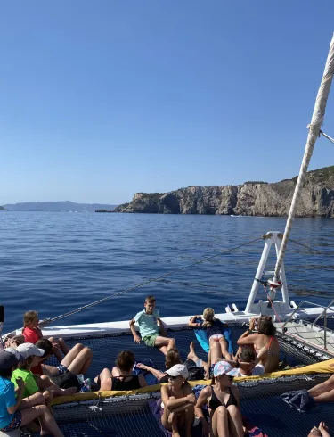 Sailing smoothly over the blue waters of the Costa Brava, you'll enjoy the quiet sailing...
