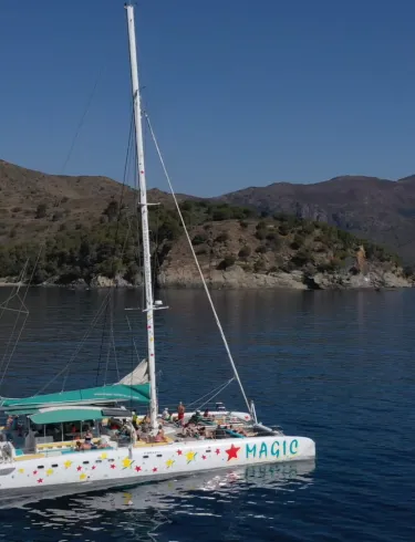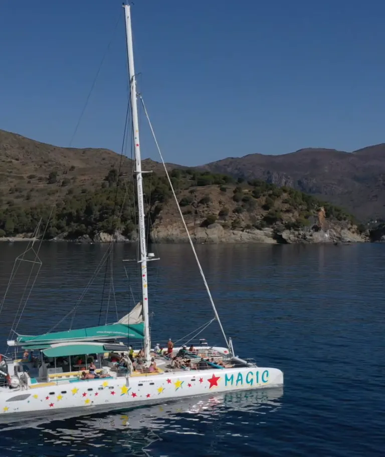 Enjoy an unforgettable sailing experience on board the MAGIC catamaran. Gliding gently over the blue waters of the Costa Brava, you will enjoy the silent sailing. We leave from the port of Palamós, and sail along the beautiful coast until the Formigues Islands.