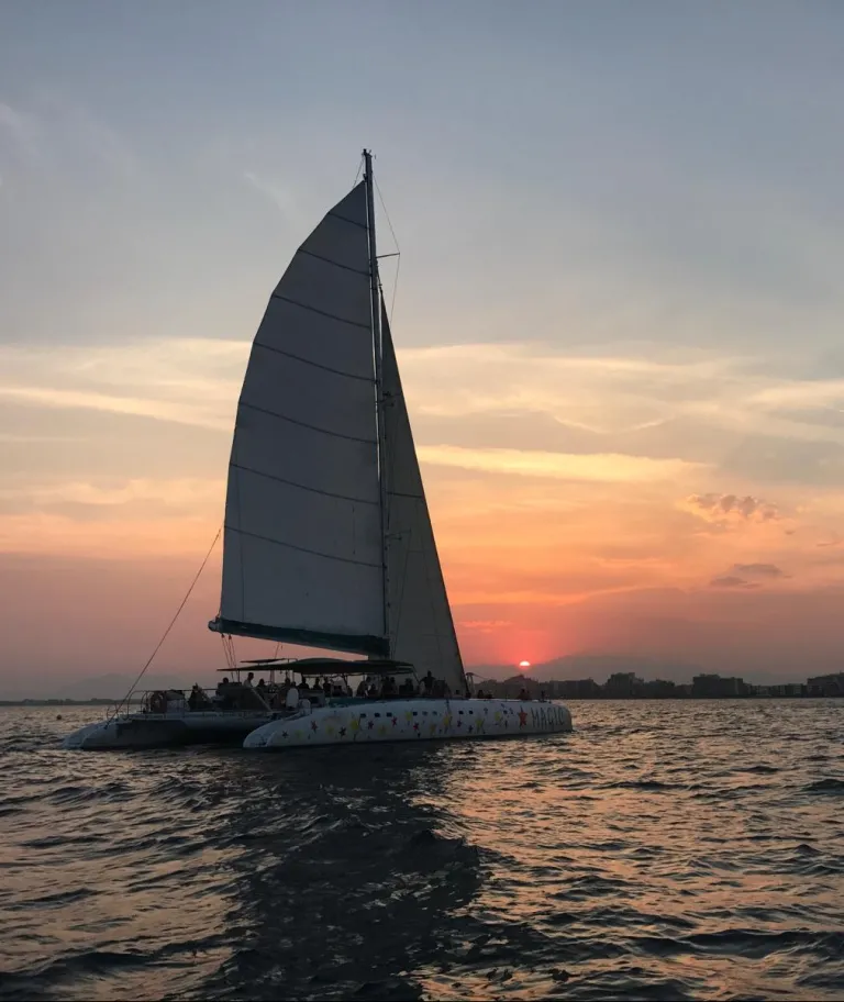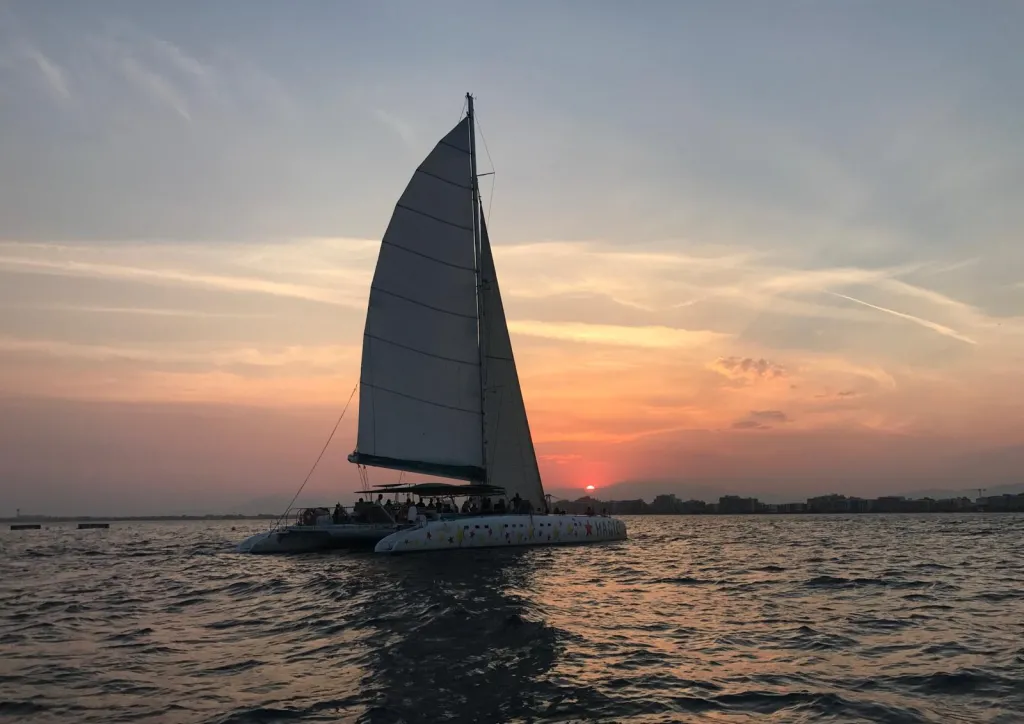 For the most romantic the Sunset excursion is ideal. We sail through the Bay of Roses with chill music wile we enjoy a Sangria or Cava cocktail and an appetizer in a magical atmosphere during the sunset and the lighting of the lights on the Paseo Maritimo of Roses and Santa Margarita.