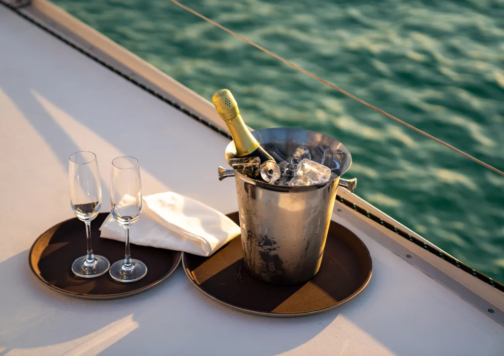 The price of the catamaran depends on the date and time chosen as well as the maximum capacity of people on the catamaran. The price of privatizing the catamaran also includes mineral water, diving goggles, and a paddle surf board upon prior request. You can add one of the menus proposed in the rates as well as an open bar service if you wish.